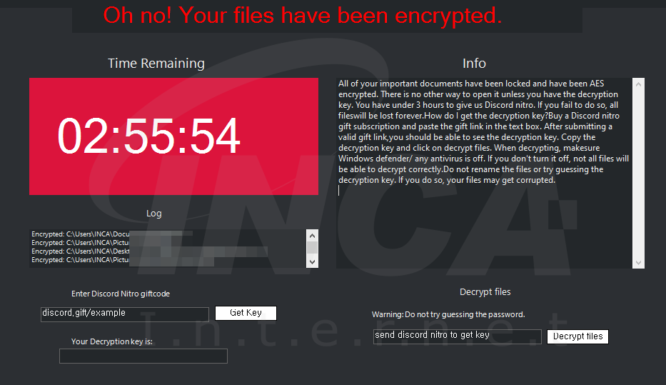 파일명에 ”.givemenitro” 확장자를 추가하고 [그림 3]의 랜섬노트를 띄우는 "Nitro" 랜섬웨어가 발견됐다. 해당 랜섬웨어는 Discord Nitro 서비스 코드를 요구하고, 감염된 사용자의 Discord 토큰을 탈취한다.