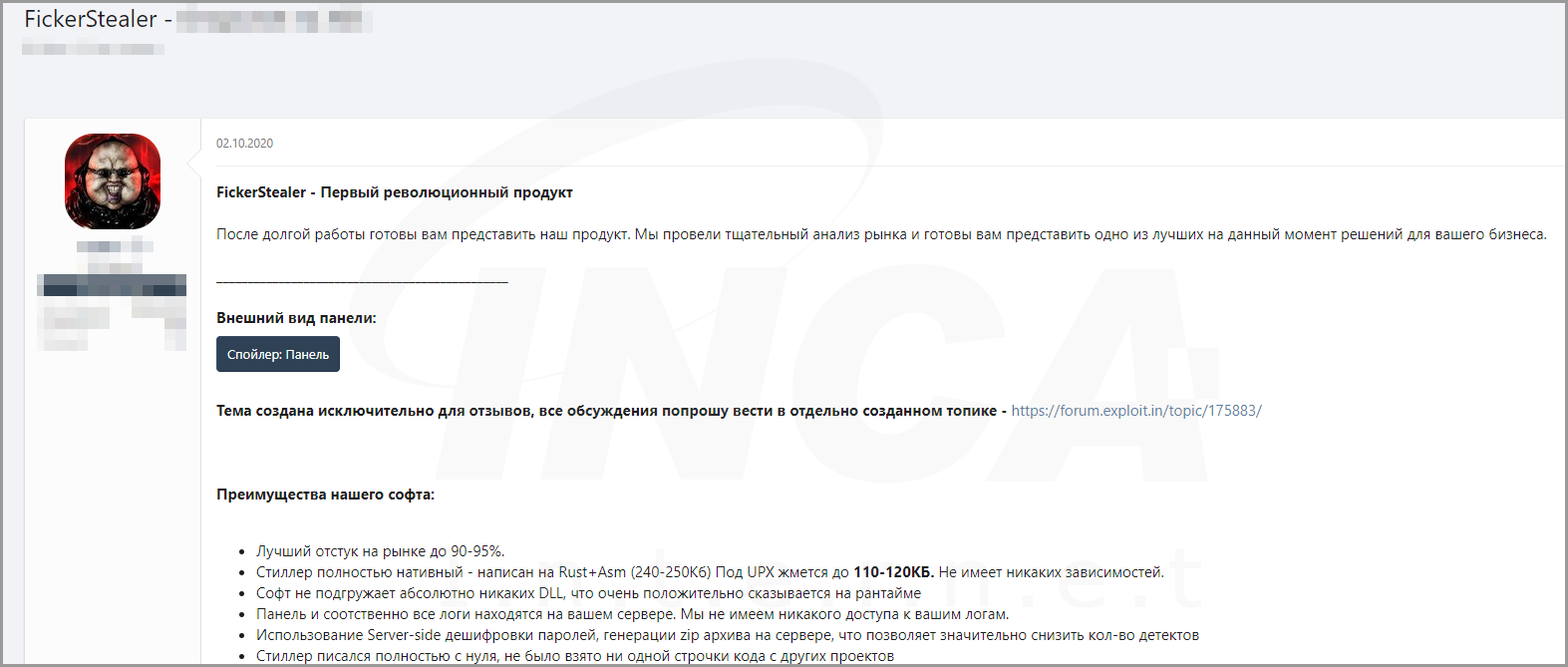 Ficker Stealer 악성코드는 2020년부터 러시아어를 사용하는 포럼에서 판매되고 있으며, 이를 구매한 공격자들이 다양한 방법으로 해당 악성코드를 유포하고 있다. 이번에 발견된 사례 이외에도 최근까지 RIG Exploit Kit과 Hancitor 악성코드를 통해 유포되었다.