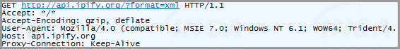 그리고 감염환경의 인터넷 연결 여부를 확인한다. 이를 위해서 IP 확인 사이트인 ipify로 연결하여 감염환경의 IP 주소를 C:\ProgramData\kaosdma.txt 에 저장한다.