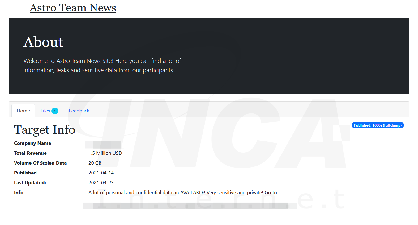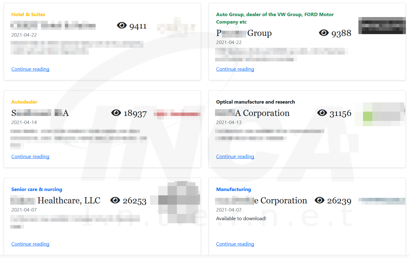 Astro Team 데이터 유출 사이트를 확인한 결과 2021년 2월부터 탈취한 데이터를 게시한 것으로 확인되었다. AstroLocker 랜섬웨어의 공격을 받은 것으로 추정되는 기업은 호텔, 자동차 사업장, 의료 산업, 가구 판매점, 식당 등 다양한 산업군들이 존재했다.