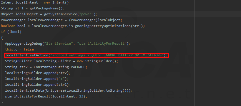 해당 악성 앱의 주요 동작은 정보 탈취이다. 악성 앱은 원활한 악성 동작을 수행하기 위해 배터리 최적화 기능을 사용하지 않는다. 이는 앱을 사용하지 않는 동안 실행하지 못하거나, 백그라운드에서 실행되는 앱의 성능이 저하되는 것을 방지하기 위한 것으로 보여진다.
