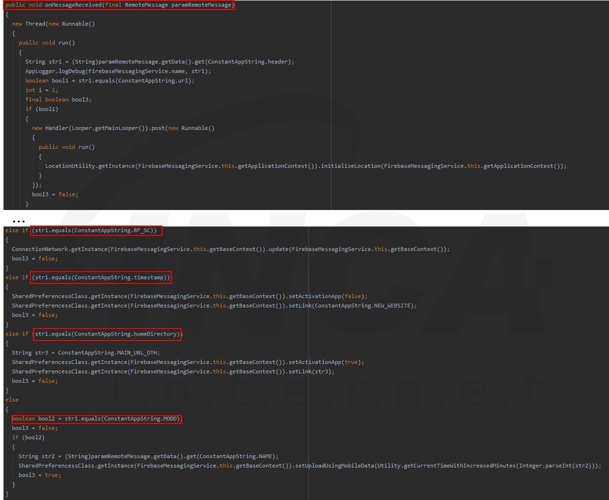 해당 악성 앱은 사용자 환경의 정보들을 탈취하기 위하여 Firebase 원격지에서 데이터를 입력 받아 제어 하도록 구성되어 있다. 원격 제어 명령어들을 확인 해 본 결과, 다양한 정보들을 제어 한다.