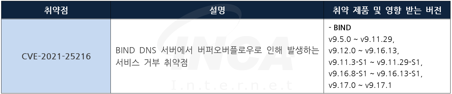 ISC(Internet Systems Consortium) 사는 제품에서 발생하는 취약점에 대한 보안 업데이트를 발표하고, 관련 취약점을 해결하기 위해 최신 버전으로 업데이트할 것을 권고하였다.