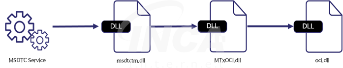 "PingBack" 악성코드는 사용자의 컴퓨터에 백도어를 설치하기 위해 [그림 1]과 같이 MSDTC 서비스가 로드하는 "oci.dll"로 위장한다. MSDTC(Microsoft Distributed Transaction Coordinator) 서비스는 여러 시스템에 분산된 트랜잭션을 처리하기 위해 사용하며, "oci.dll"은 오라클 데이터베이스를 조작하는데 사용하는 C 라이브러리로 오라클 클라이언트를 설치할 때 설치 경로에 생성된다. 하지만, “MTxOCI.dll”에서 실행할 “oci.dll”의 경로를 정확히 지정하지 않아 다른 경로에 존재하는 “oci.dll”이 실행될 수 있다.