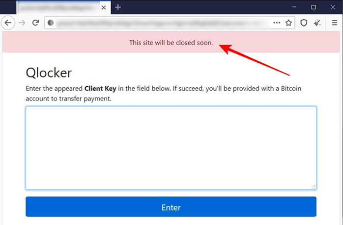 Qlocker 랜섬웨어의 랜섬머니 협상을 위한 Tor 사이트에 "이 사이트는 곧 폐쇄 될 것입니다."라는 메시지를 표시했다.