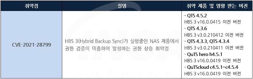 QNAP 사는 제품에서 발생하는 취약점에 대한 보안 업데이트를 발표하고, 관련 취약점을 해결하기 위해 최신 버전으로 업데이트할 것을 권고하였다.
