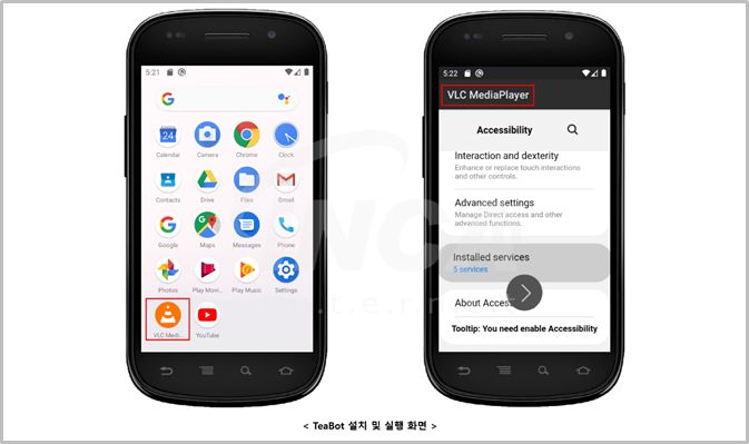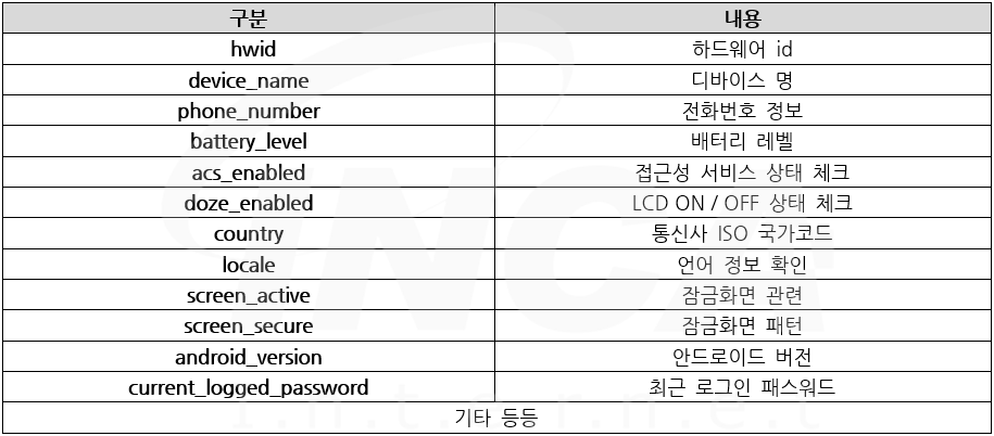 그 밖에도 접근성 서비스를 이용하여 대상이 되는 애플리케이션의 이벤트가 발생하면 키로깅 기능이나 스크린 캡처 화면을 저장하여 탈취 한다.