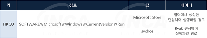마지막으로, 빌더에서 생성한 랜섬웨어는 PC를 재부팅 할 때 자동 실행 하기 위해 Run 레지스트리 키에 등록하는 기능이 있으며, 이 기능은 류크 랜섬웨어에서 사용한 사례가 있었다.