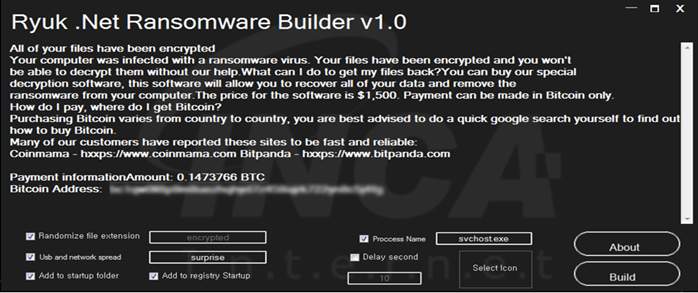 최근 랜섬웨어를 만드는 빌더로 위장한 악성 빌더가 발견됐다. 빌더의 제작자는 빌더를 사용해 류크(Ryuk) 랜섬웨어를 만들 수 있다고 주장하지만, 실제로 류크 랜섬웨어와 비교해본 결과 유사점이 발견되지 않았다.