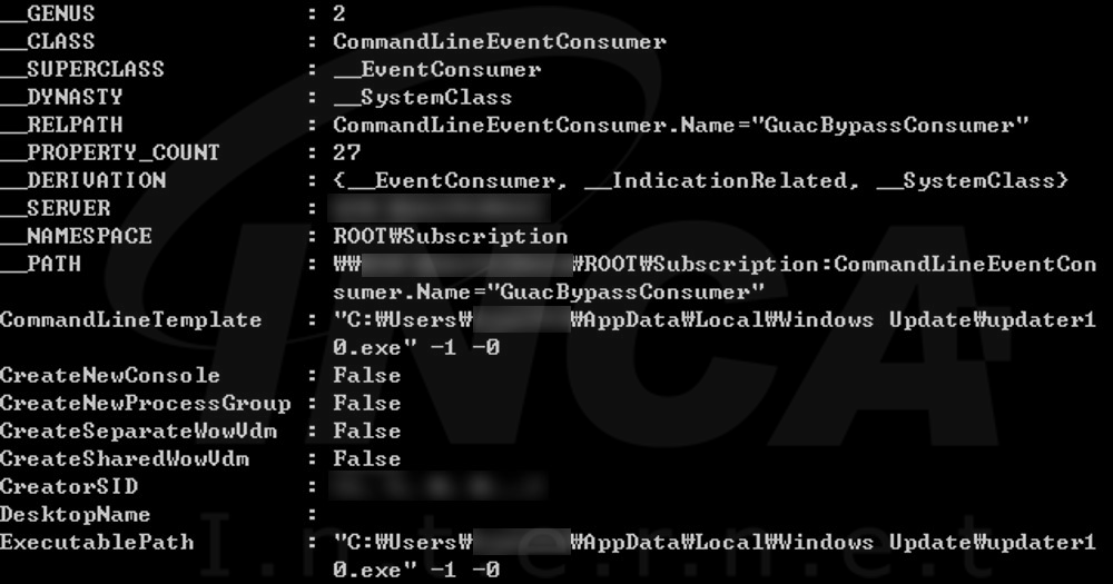 "WMIC" 명령어를 사용하여 "\rootsubscription" 네임 스페이스에 윈도우 부팅 후 60초 이내 자동으로 악성코드를 실행하는 이벤트를 생성한다.