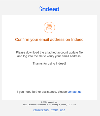 미국의 고용 웹사이트인 Indeed 사용자를 대상으로 한 피싱 캠페인이 발견되었다.
