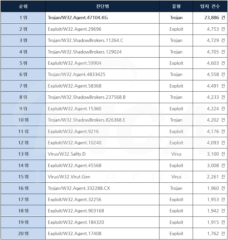 악성코드 Top20
