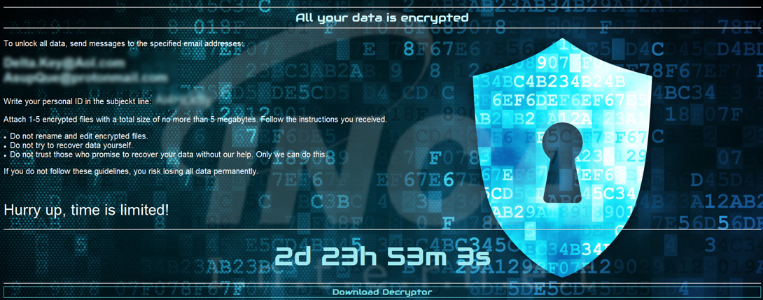 파일명에 “.[Delta][랜덤문자열]” 확장자를 추가하고 [그림 3]의 랜섬노트를 생성하는 “Delta” 랜섬웨어가 발견됐다. 해당 랜섬웨어는 시스템 복원을 무력화한다.