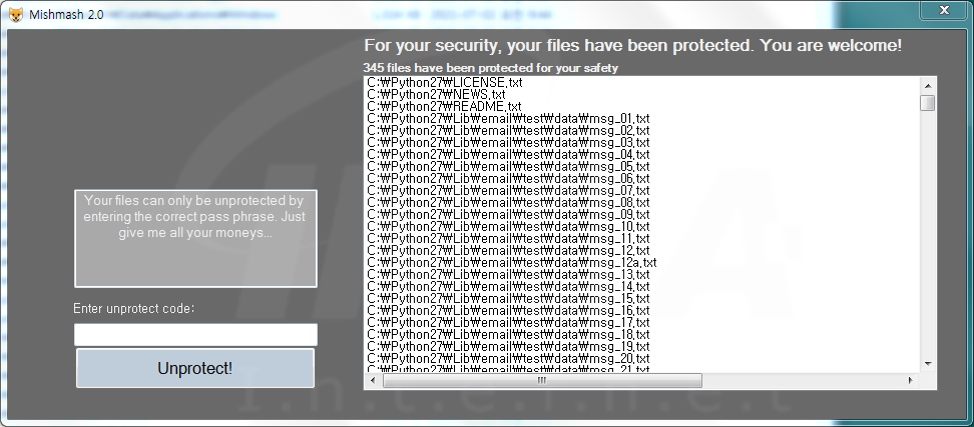 파일명을 “.txt” 확장자로 변경하고 [그림 1]의 랜섬노트를 생성하는 “Mishmash” 랜섬웨어가 발견됐다.