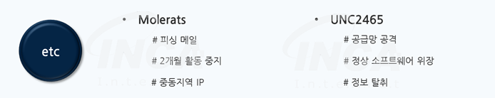 이외에도 해커 그룹들은 중동의 지정학적 이슈를 악용하거나 합법적인 웹사이트로 위장하여 악성코드를 유포하였으며, 공급망 공격을 통해 추가 악성코드를 다운로드하거나 사용자 정보 탈취 등의 악성행위를 수행한 사례가 발견되었다.