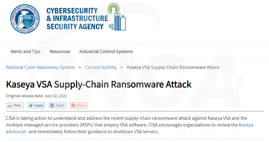 [3] CISA (2021.07.08) - Kaseya VSA Supply-Chain Ransomware Attack