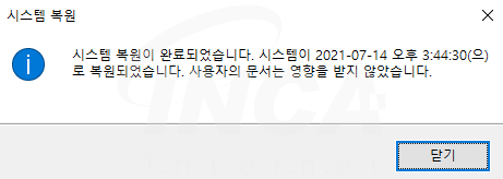 이후 "시스템 복원"을 실행하면, 컴퓨터가 재부팅되며 복원이 진행된다.