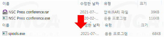 압축 파일은 암호화되어 있으며, 내부 파일 실행 시 "spools.exe" 라는 파일명으로 "BoxCaon" 악성코드를 드랍하고 실행한다.