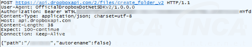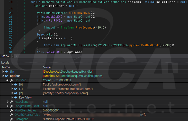 실행된 "BoxCaon" 악성코드는 내부에 삽입된 엑세스 토큰과 Dropbox API를 통해 공격자의 Dropbox 계정에 연결을 시도한다.