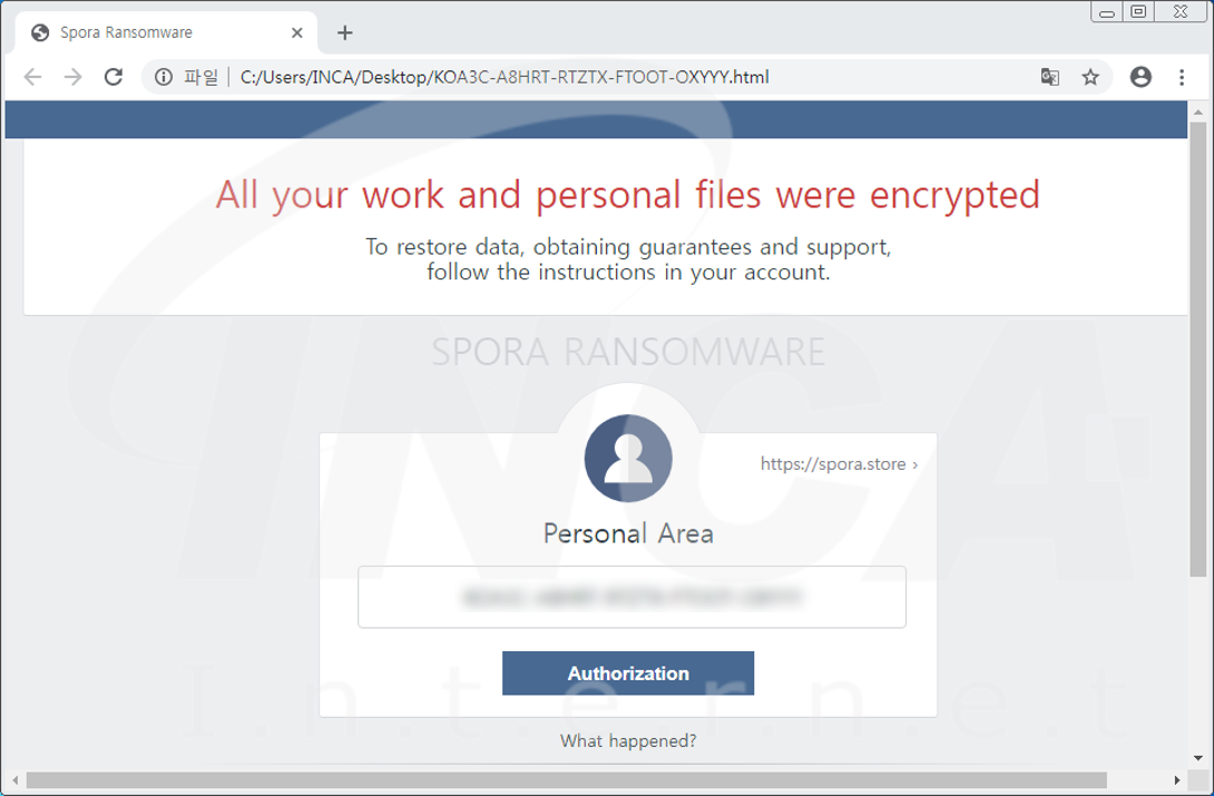 파일명에 ".zip" 확장자를 추가하고 " [Persnal Key 값].html“라는 랜섬노트를 생성하는 “Sopora” 랜섬웨어가 발견됐다. 해당 랜섬웨어는 시스템 복원을 무력화한다.