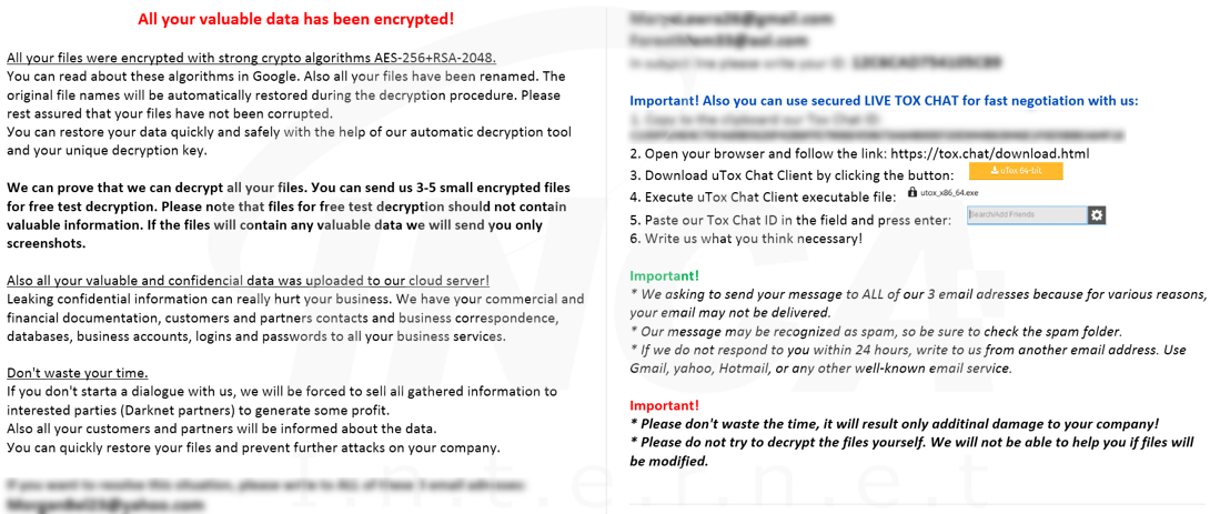 파일명에 “.id-[사용자 ID].[공격자 메일].ctpl” 확장자를 추가하고 [그림 17]의 랜섬노트를 생성하는 "Dharma" 랜섬웨어의 변종이 발견됐다. 해당 랜섬웨어는 특정 서비스를 종료하고 시스템 복원을 무력화한다.