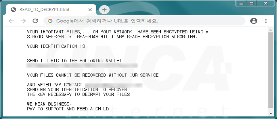 파일명을 "[파일명 Base64].NASACry"로 바꾸고 "READ_TO_DECRYPT.html"라는 랜섬노트를 생성하는 “NASACry” 랜섬웨어가 발견됐다.