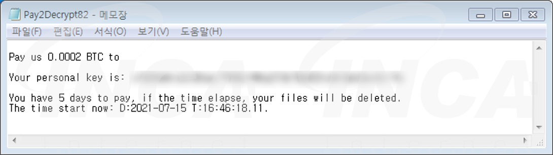파일명에 ".Jcrypt" 확장자를 추가하고 [그림 10]의 랜섬노트를 생성하는 “JCrypt” 랜섬웨어가 발견됐다.