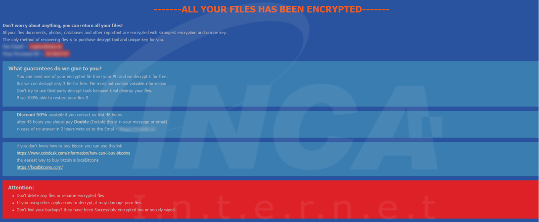 파일명에 “.[랜덤 문자열]“ 확장자를 추가하고 “YOUR_FILES_ARE_ENCRYPTED.HTML"라는 랜섬노트를 생성하는 "SunCrypt" 랜섬웨어의 변종이 발견됐다.