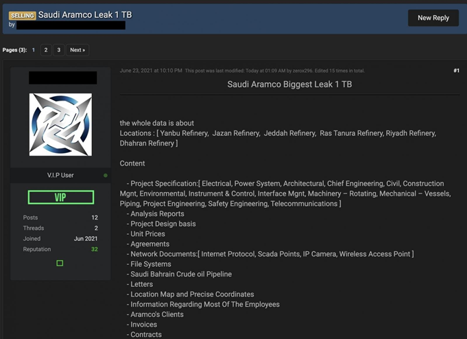 [1] BleepingComputer (2021.07.20) – Saudi Aramco data breach sees 1 TB stolen data for sale
