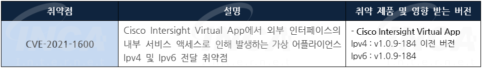 Cisco 사는 제품에서 발생하는 취약점에 대한 보안 업데이트를 발표하고, 관련 취약점을 해결하기 위해 최신 버전으로 업데이트할 것을 권고하였다.