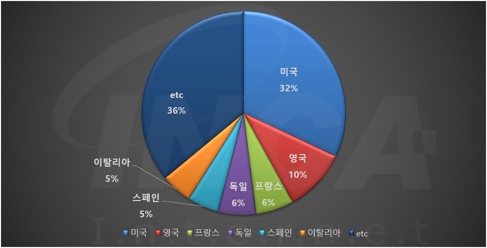 2021년 7월(7월 1일 ~ 7월 31일)에 발생한 데이터 유출 건을 국가별로 비교하였을 때 미국이 32%로 가장 높은 비중을 차지했고, 영국과 프랑스, 독일이 각각 10%와 6%, 스페인과 이탈리아가 각각 5%로 그 뒤를 따랐다.