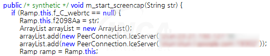 다른 모바일 악성 앱과 마찬가지로 Oscorp 또한 공격자 C&C 서버로부터 명령어를 수신하여 다양한 악성 기능을 실행하는 Bot 기능을 가지고 있다. 이 중 영상 녹화 기능이 실행되면 WebRTC 와 STUN 서버를 통해 수집한 녹화 영상 데이터를 실시간으로 공격자 서버로 전달한다.