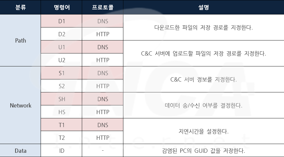 “Shark”는 동일한 이란 APT 그룹이 지난 7월에 진행한 캠페인에서 사용한 악성코드로 .NET으로 제작됐으며, 사용하는 명령은 [표 2]와 같다.
