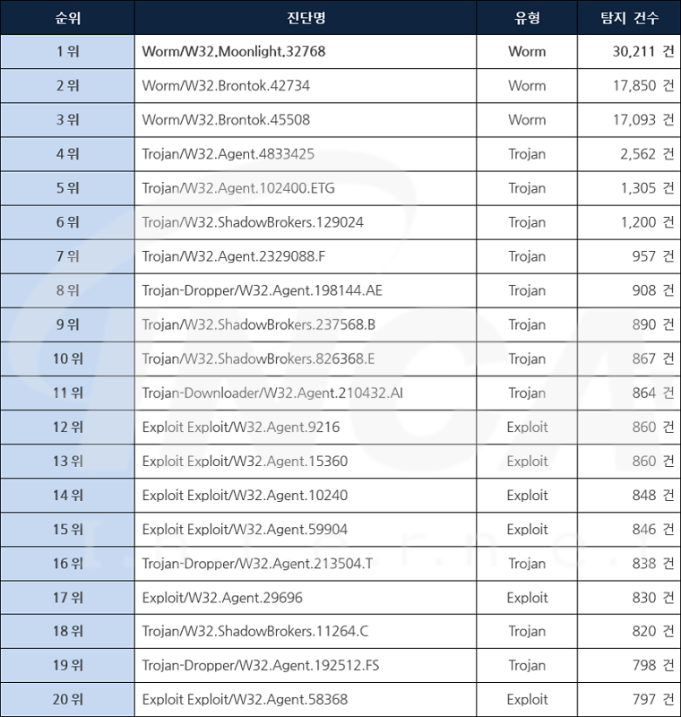 악성코드 Top20