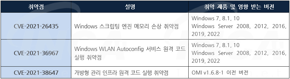 Microsoft 사는 제품에서 발생하는 취약점에 대한 보안 업데이트를 발표하고, 관련 취약점을 해결하기 위해 최신 버전으로 업데이트할 것을 권고하였다.