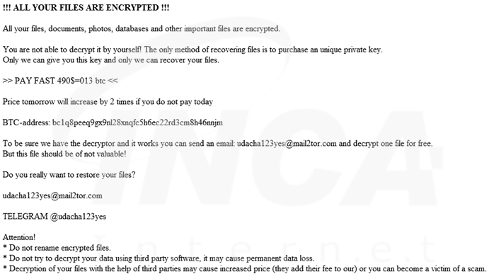 파일명에 “.udacha” 확장자를 추가하고 “ReadMe_instruction.mht”라는 랜섬노트를 생성하는 “Udacha” 랜섬웨어가 발견됐다. 해당 랜섬웨어는 시스템 복원을 무력화한다.