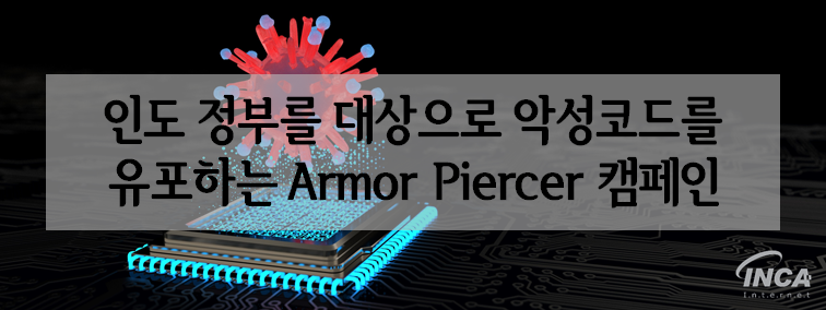 최근 인도 정부를 대상으로 악성코드를 유포하는 캠페인이 발견됐다. 해당 캠페인은 Armor Piercer라고 불리며 인도 정부가 사용하는 카바흐(Kavach) 응용프로그램으로 위장한 문서를 사용해 사용자에게 접근한다. 이후, 사용자 PC를 조작하고 기밀 정보에 접근하기 위해 최종 페이로드인 “NetWire” RAT 또는 “Warzone” RAT 악성코드를 다운로드 및 실행한다.