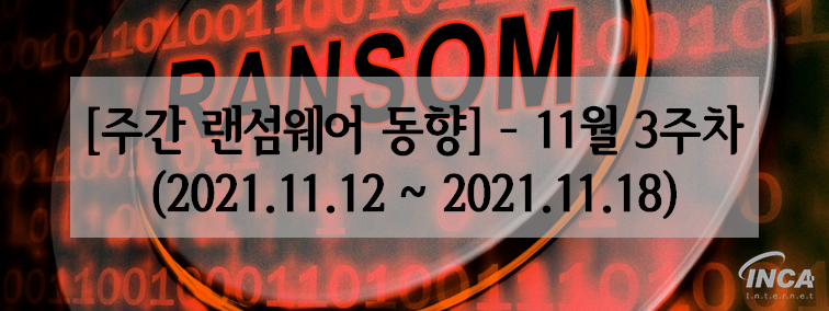 | [주간 랜섬웨어 동향] - 11월 2주차 (0) | 2021.11.12 |