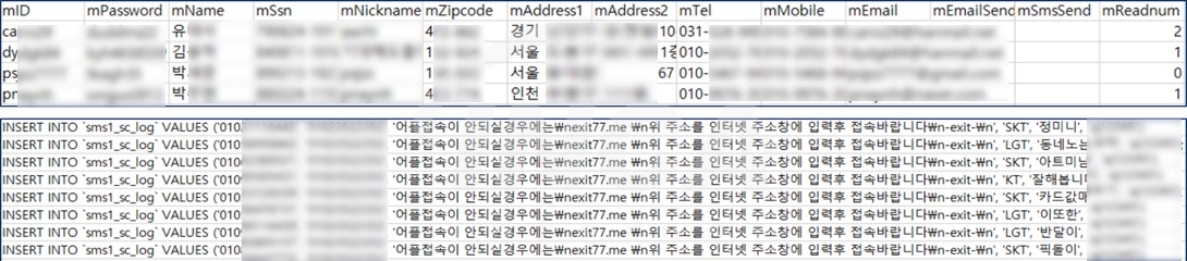 또한, 각 엑셀 파일들에서는 ID, 비밀번호 등의 회원정보와 주민등록번호 및 휴대폰 번호 등의 개인정보가 확인됐다.