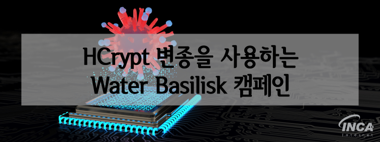 최근 파일 난독화 프로그램인 "HCrypt"의 변종을 사용하는 Water Basilisk 캠페인이 발견됐다. 해당 캠페인의 공격자들은 공격 과정에 사용할 스크립트 및 악성코드를 "HCrypt"로 난독화했으며, 사용자 PC에 정보 탈취 또는 조작을 위한 목적의 악성코드를 설치한다.