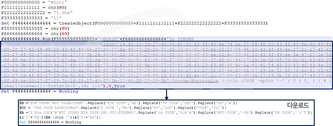 3. 파워쉘 스크립트는 공격자의 C&C 서버에서 최종 페이로드 실행을 위한 VBS 스크립트를 다운로드한다.
