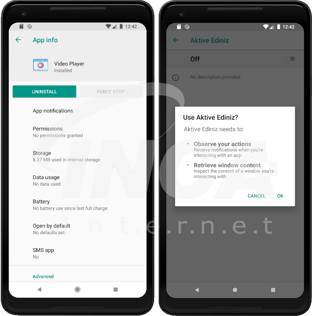 최근, "Video Player.apk"라는 이름으로 악성 원격제어 앱이 발견되었다. 해당 앱은 원격지와 연결하여 파일을 다운로드하거나 단말기의 정보 및 등을 탈취한다. 그리고 추가적인 원격제어 동작 여부를 설정하고 원격지에서 받아온 데이터를 통해 특정 번호로 문자메시지를 전송하거나, 전화를 할 수도 있다. 해당 앱은 스토어에서 판매되지는 않지만, 웹 페이지 등 그 외의 경로로 배포된 것으로 추정된다.